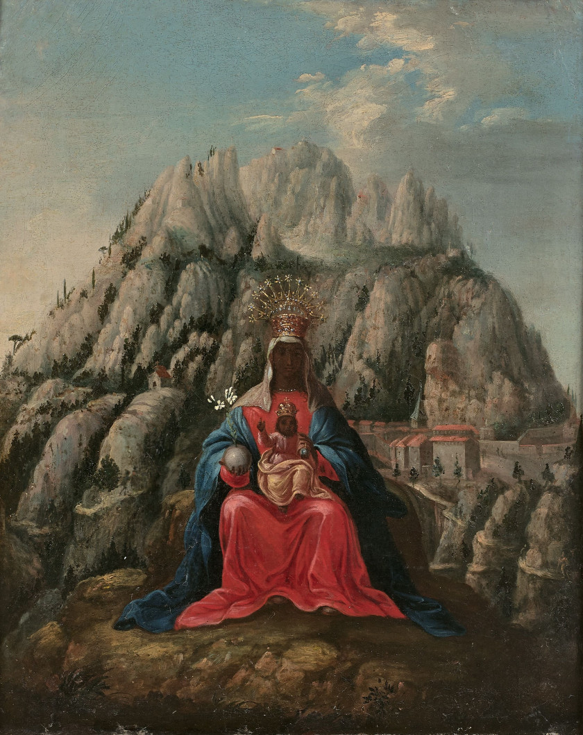 Peruvian, Cuzco School, Virgin of Montserrat, ca. 1645, oil on canvas. Allentown Art Museum.