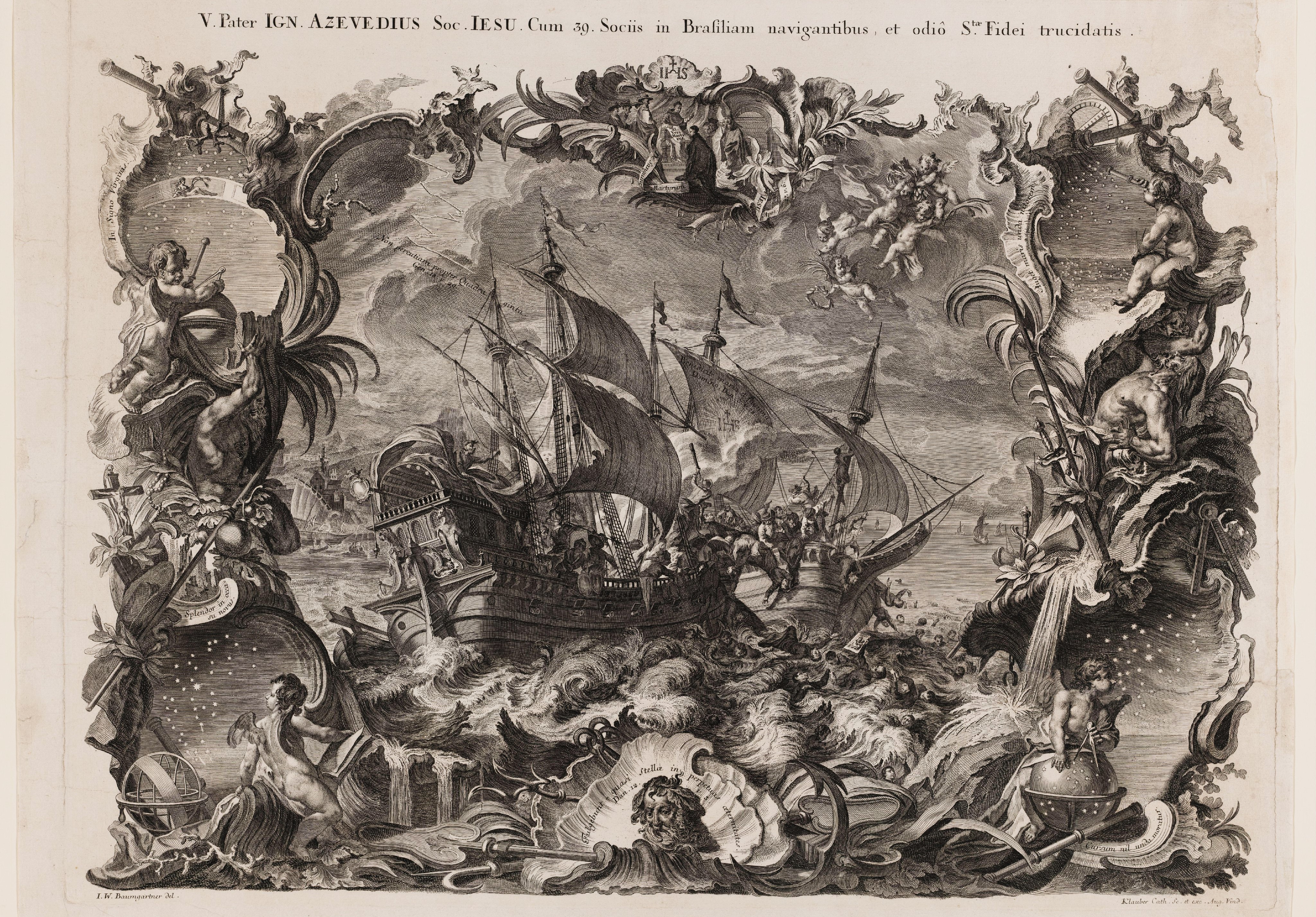 Johann Baptist Klauber, “Inácio de Azevedo en Portugese jezuïeten vermoord door hugenoten op hun missie naar Brazilië”, Amsterdam, Rijksmuseum, https://id.rijksmuseum.nl/200466425, Public Domain.